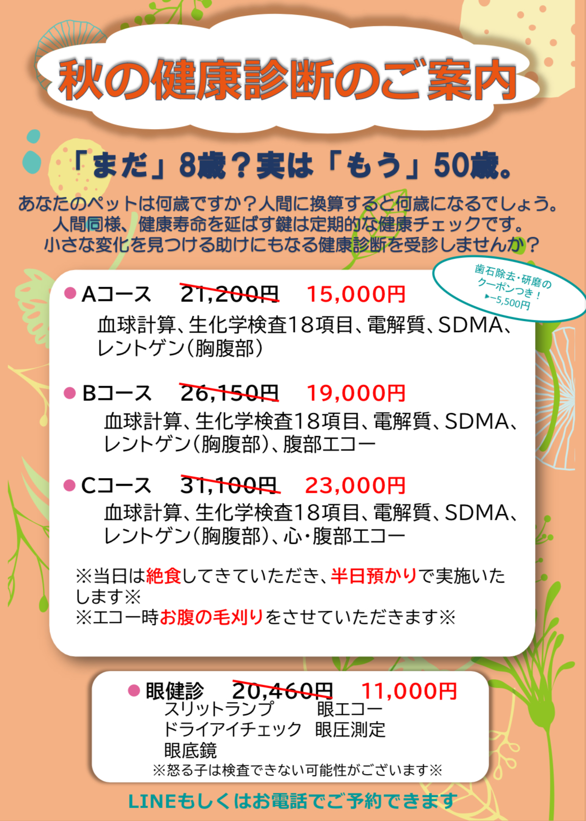 ※今まで通り、血液検査のみ(5,550円)の健康診断は随時受けることが可能です◎