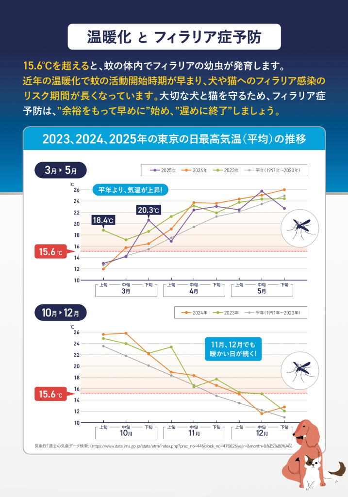 近年、暖かい日が増え、蚊の活動期間が長くなってきていますので、