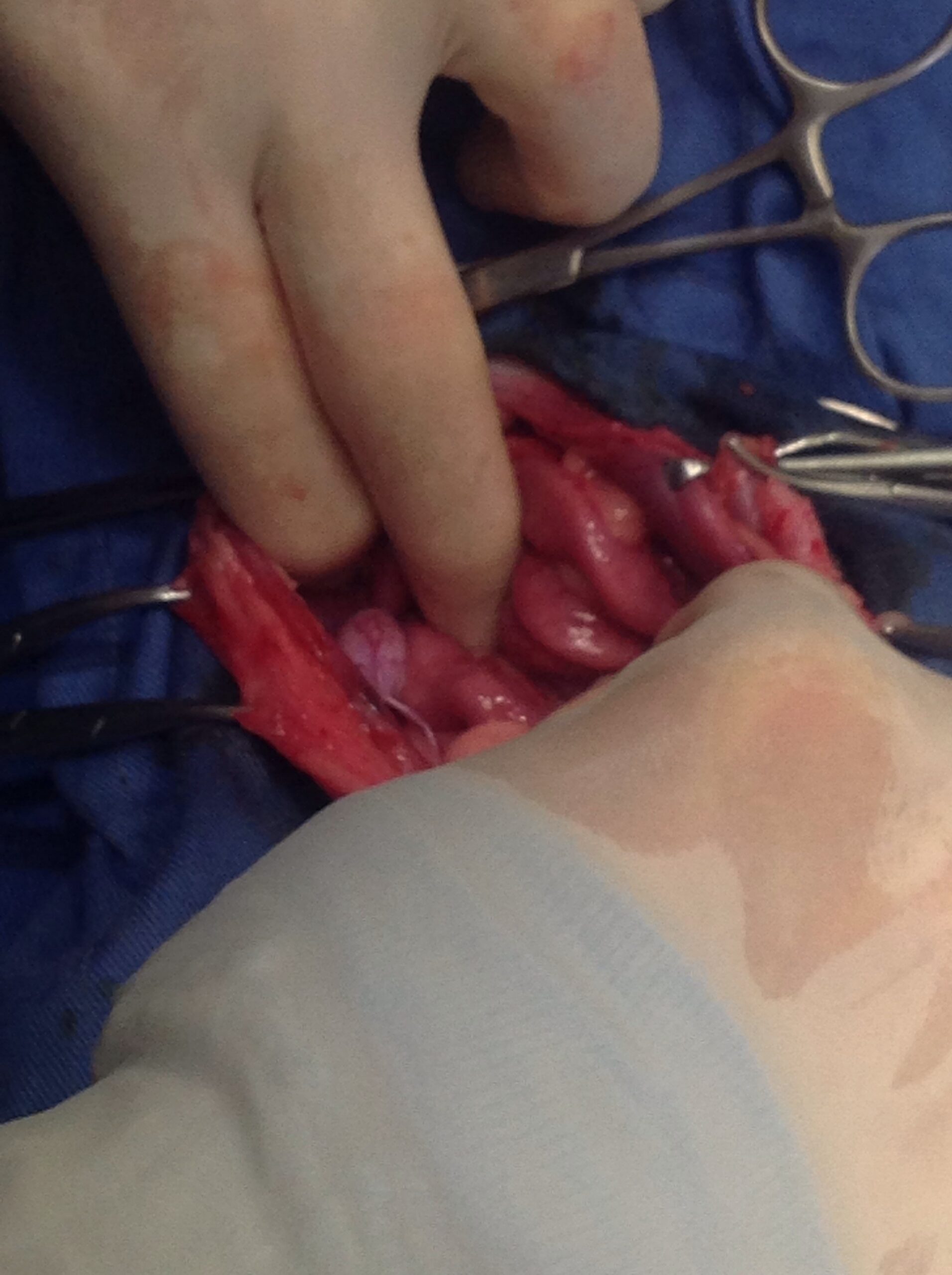 切開創を広げて卵巣があるであろう位置を確認したところ