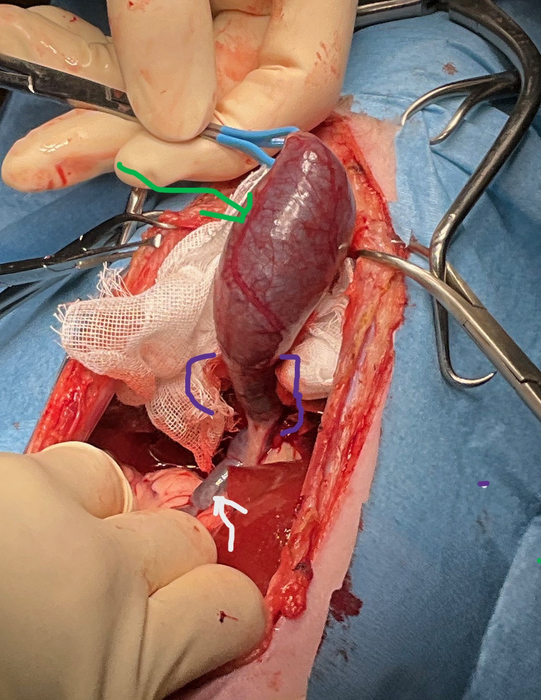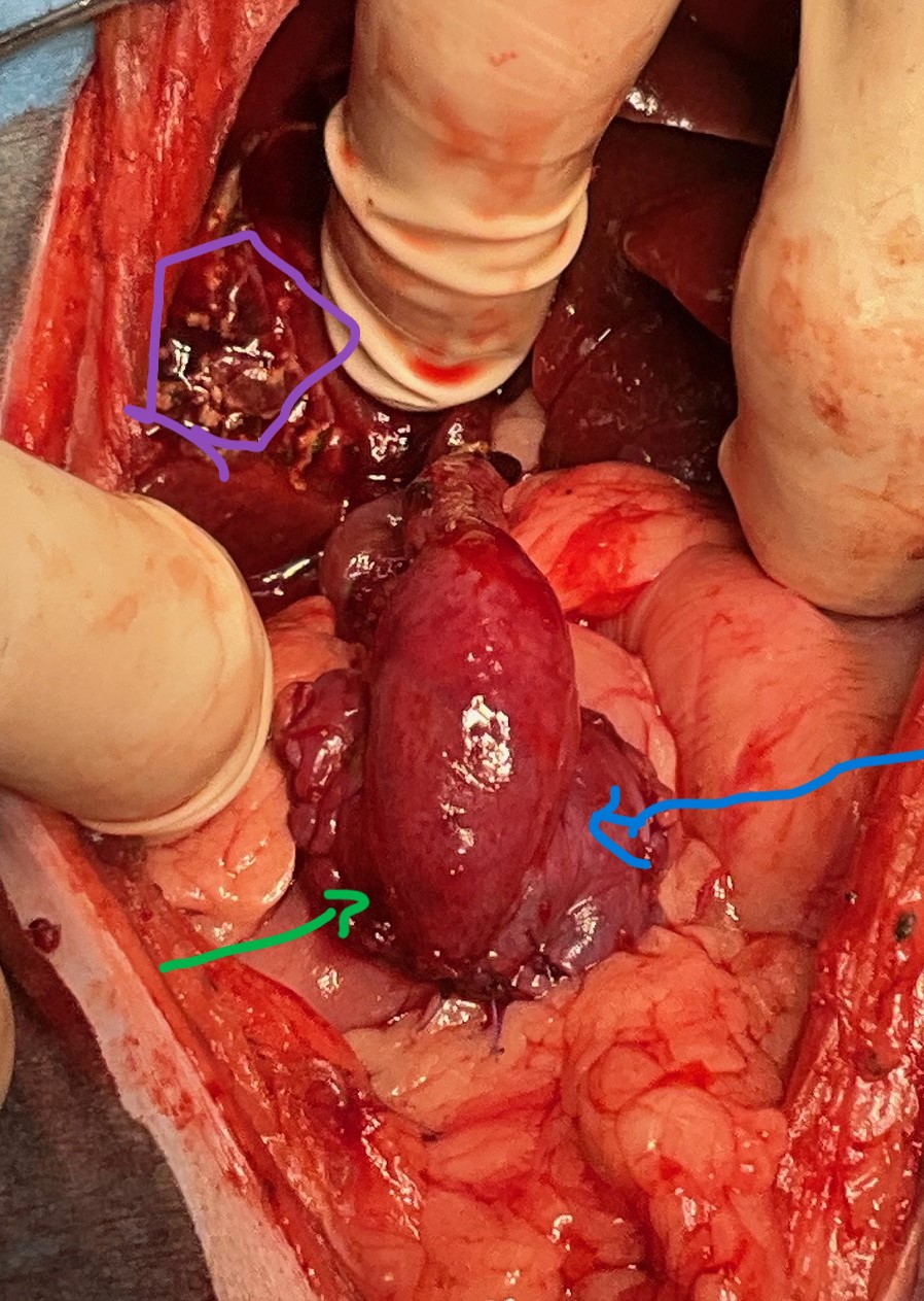 手術後:肝臓にくっついている胆のうを全て剥がしてひっくり返し十二指腸と吻合しました